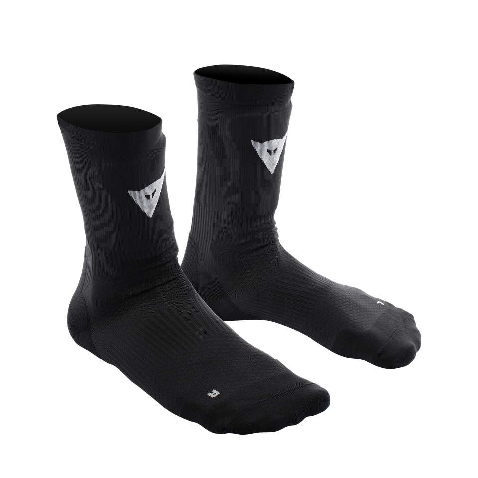 Item: 2039900001619004 HgROX Socks are the latest version of Dainese’s MTB socks, medium size and raised by 3 cm compared to the previous version. They are built to ensure resistance and elasticity during every phase of activity, from the most extreme descents to the most intense riding. Their construction, a blend of polyamide and elastene, makes for a sock that is stable and comfortable in any situation. Due to the mapping of areas most exposed to rubbing, the areas subject to the greatest wear are reinforced to ensure maximum durability even with intensive use. Protection against flying stones or debris or any impact with the pedal in case of a loss of contact is guaranteed by the special protective insert on the shin, in Crash Absorb Memory Foam, which does not impede the rider due to its soft, ergonomic structure.