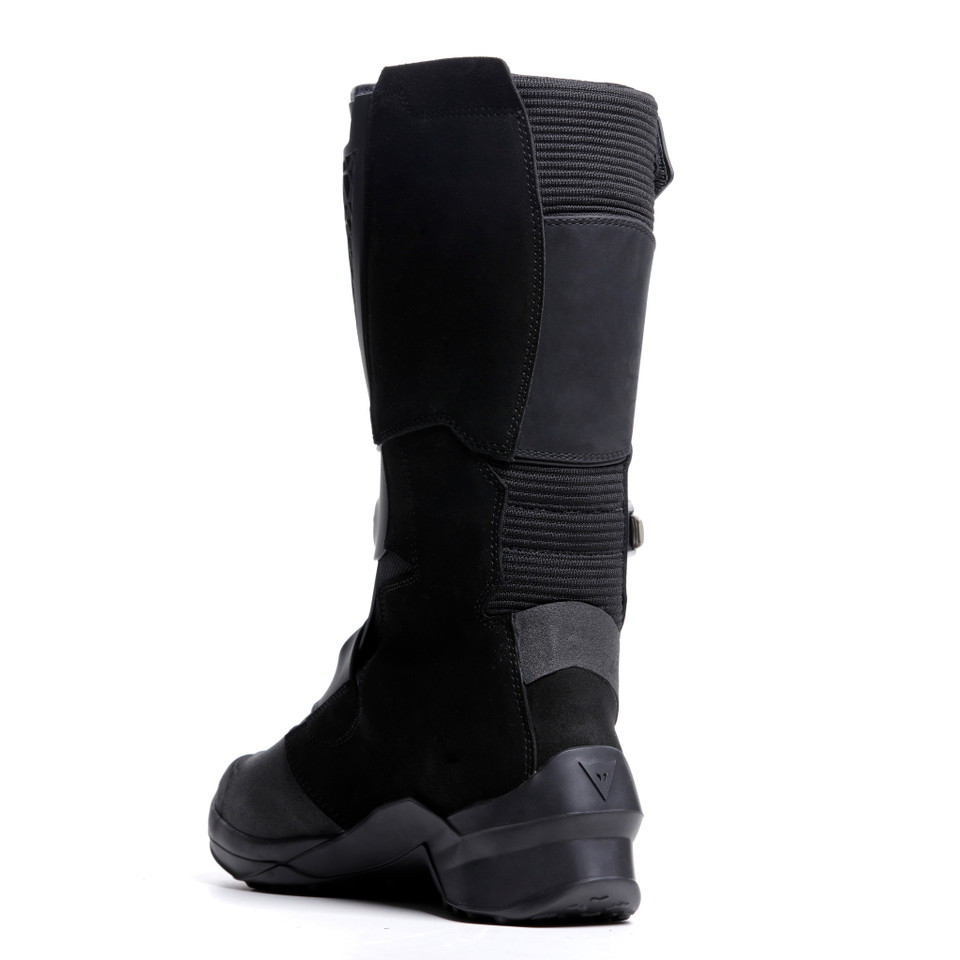 Item: 201795241631005 The Dainese adventure touring boots. Maximum comfort and protection for motorcycle trips on any terrain. Safety and control for exploration in the utmost freedom. The premium leather construction with waterproof Gore-Tex® Performance membrane allows higher levels of resistance and protection from atmospheric agents to be achieved, for a safe and comfortable fit in all weather conditions. Maximum attention to lightness and comfort combines with a focus on riding safety, in part through the shin guard with Dainese Pro-Armor technology, which allows the highest level of safety and freedom of movement. The closure is safe and precise due to the QuickLacing System with double metal lever. The innovative asymmetrical Groundtrax® soles with differentiated gear and brake areas are designed to ensure the ideal stability, grip and traction both while riding and off the bike, on any terrain.The strength and stiffness of the tread make Seeker Gore-Tex® suitable for the road and off-road, always guaranteeing the utmost balance and comfort.Equipped with an adjustment system on the shaft to ensure maximum wearability and ease of fit.